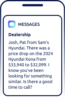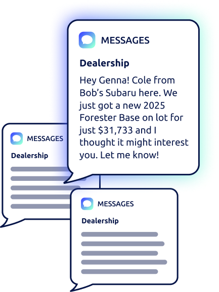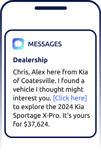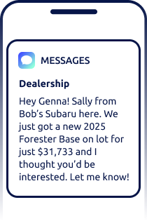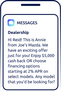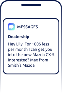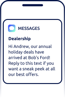 Engage your shoppers in real time with the industry’s smartest text message marketing for car dealerships.